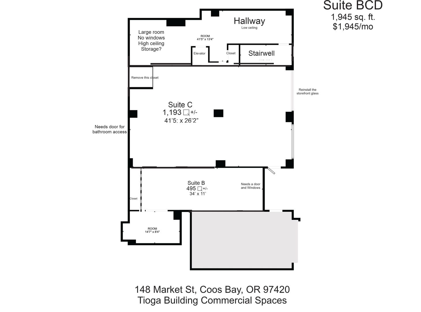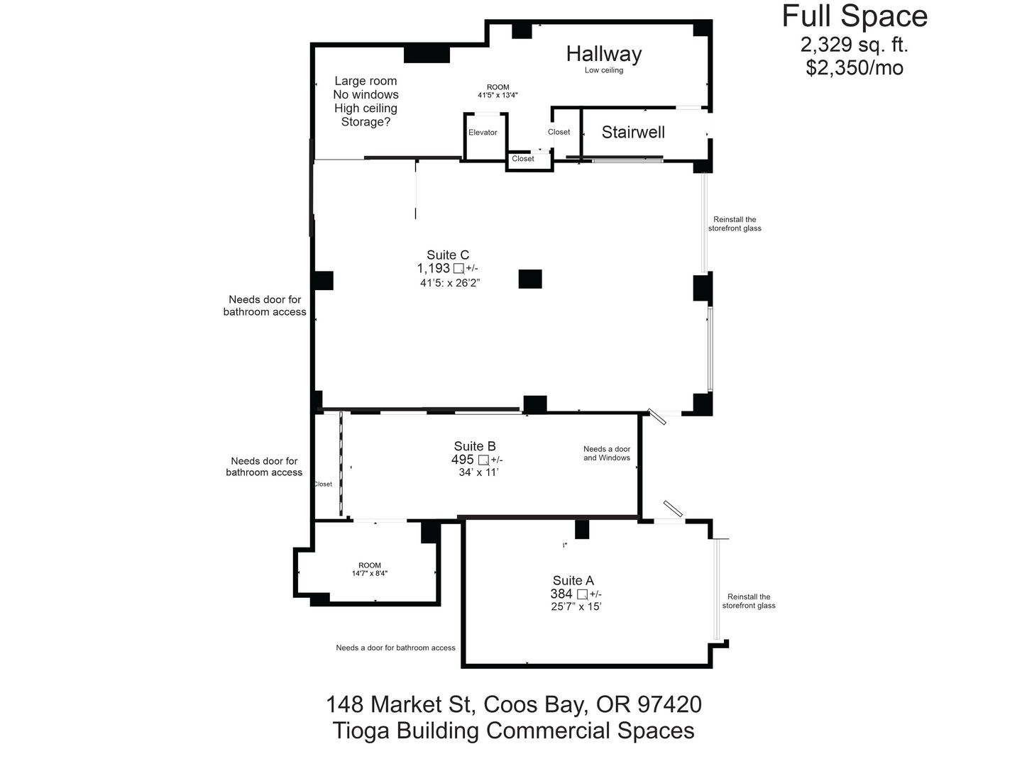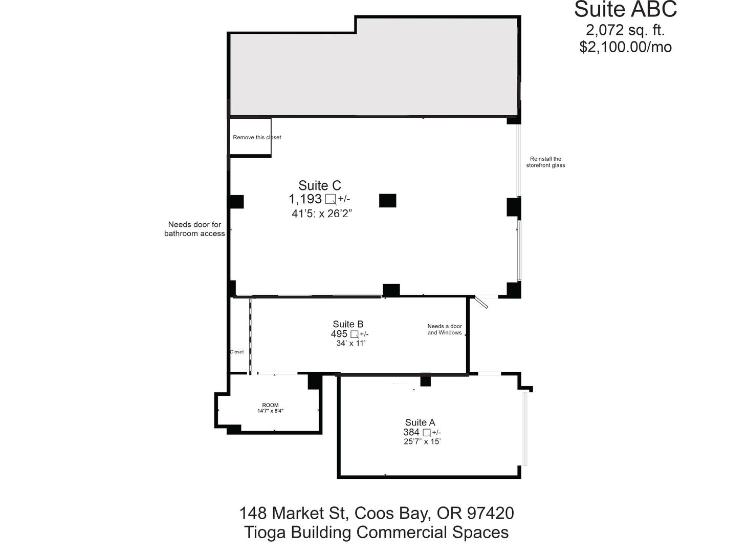 Perfect for retail, office, studio, or professional services. Bring your business to one of the most visible and convenient locations in Coos Bay.